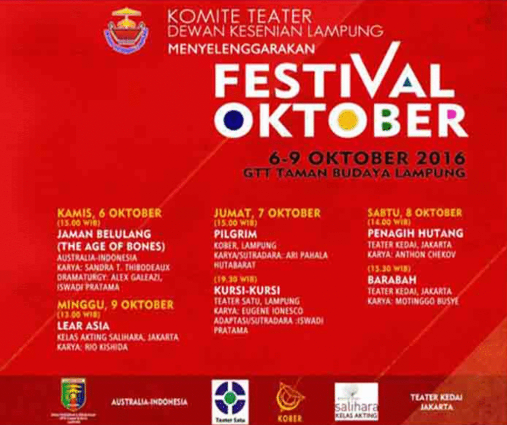 • Kolaborasi Indonesia–Australia menampilkan Jaman Belulang (The Age of Bones) karya Sandra Thibodeaun, disutradarai Iswadi Pratama.
